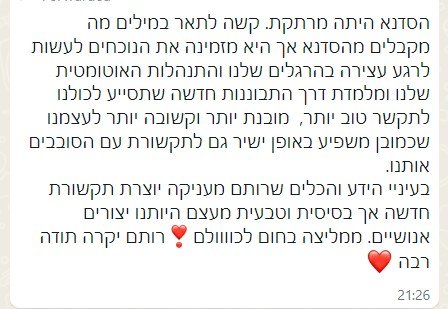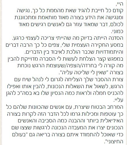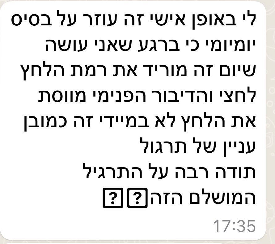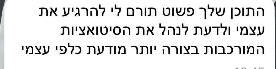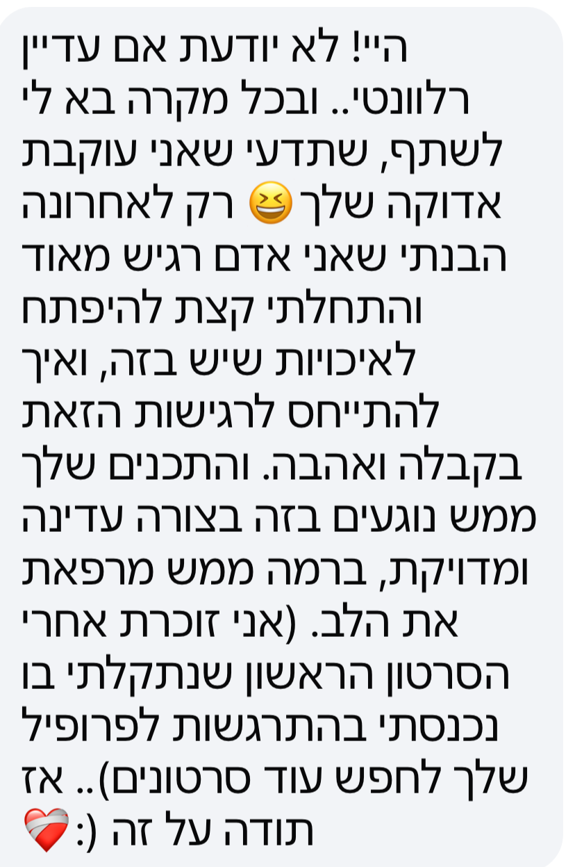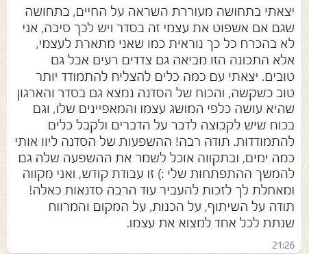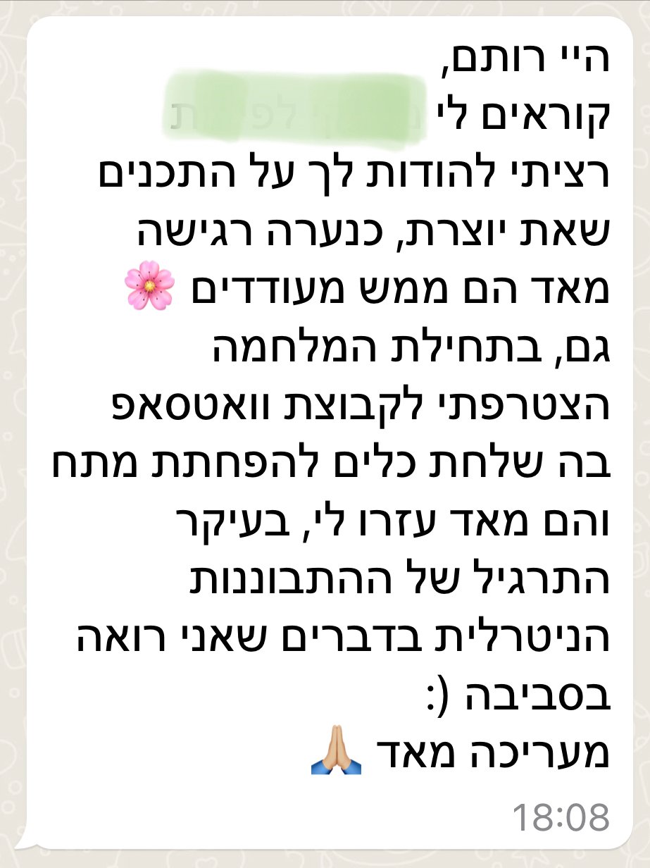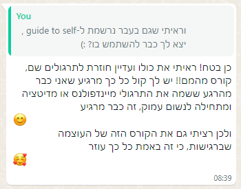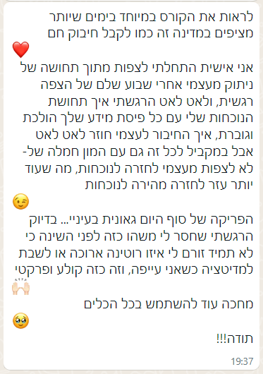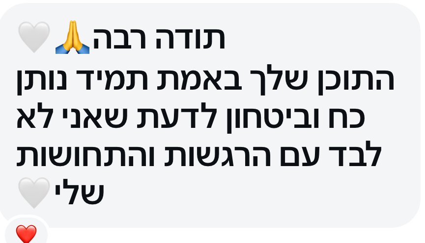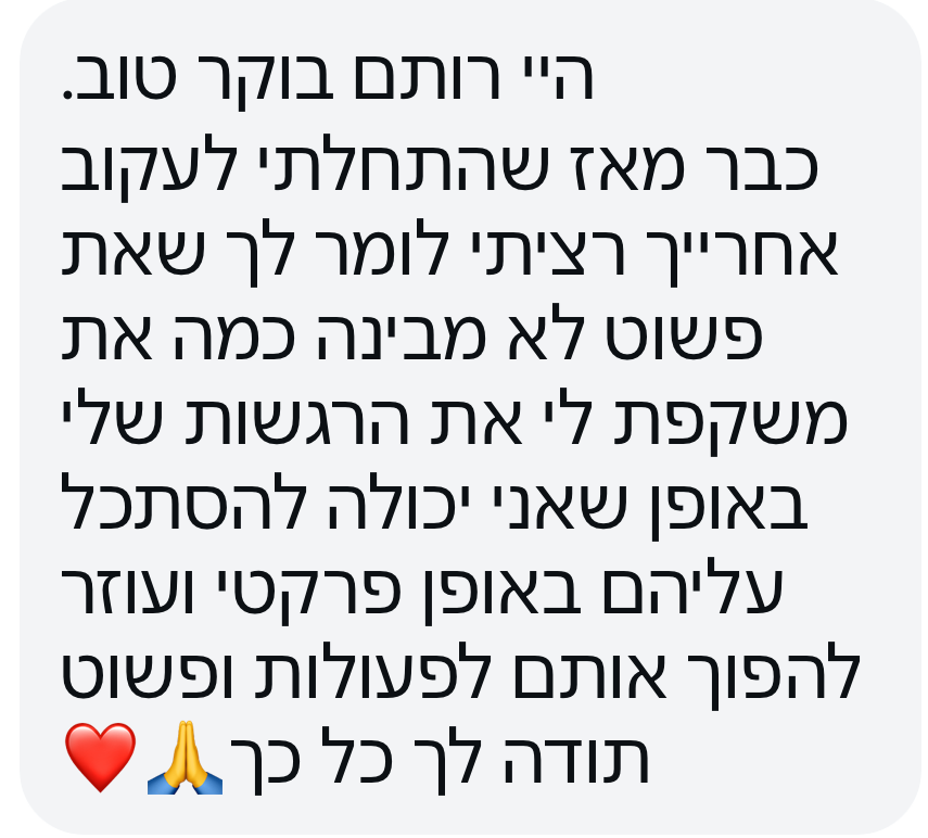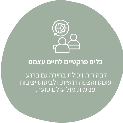 - שפה פנימית חדשה ומחזקת שמאפשרת לתמוך בעצמכם ברגעים קשים